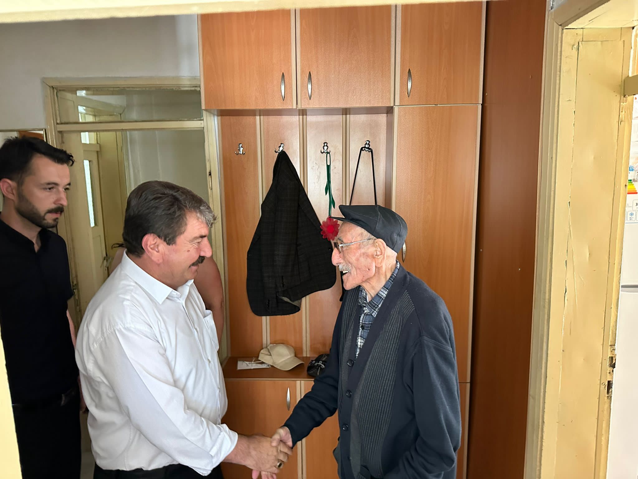 Belediye Başkanımız Nihat Sarı ve İlçe Kaymakamımız Kemal Duru dedemiz Şükrü Bayrakçı’ya günün anısına çiçek ve çikolata takdim etti.