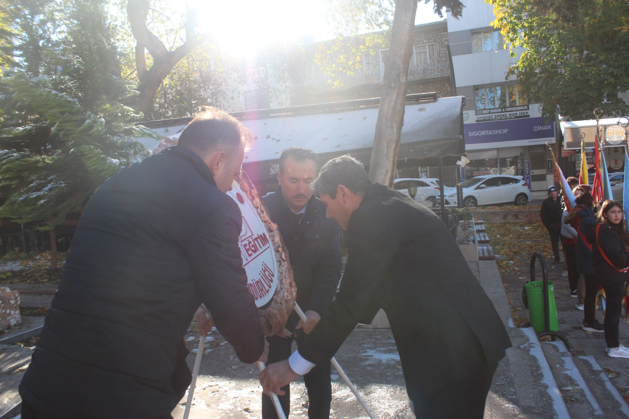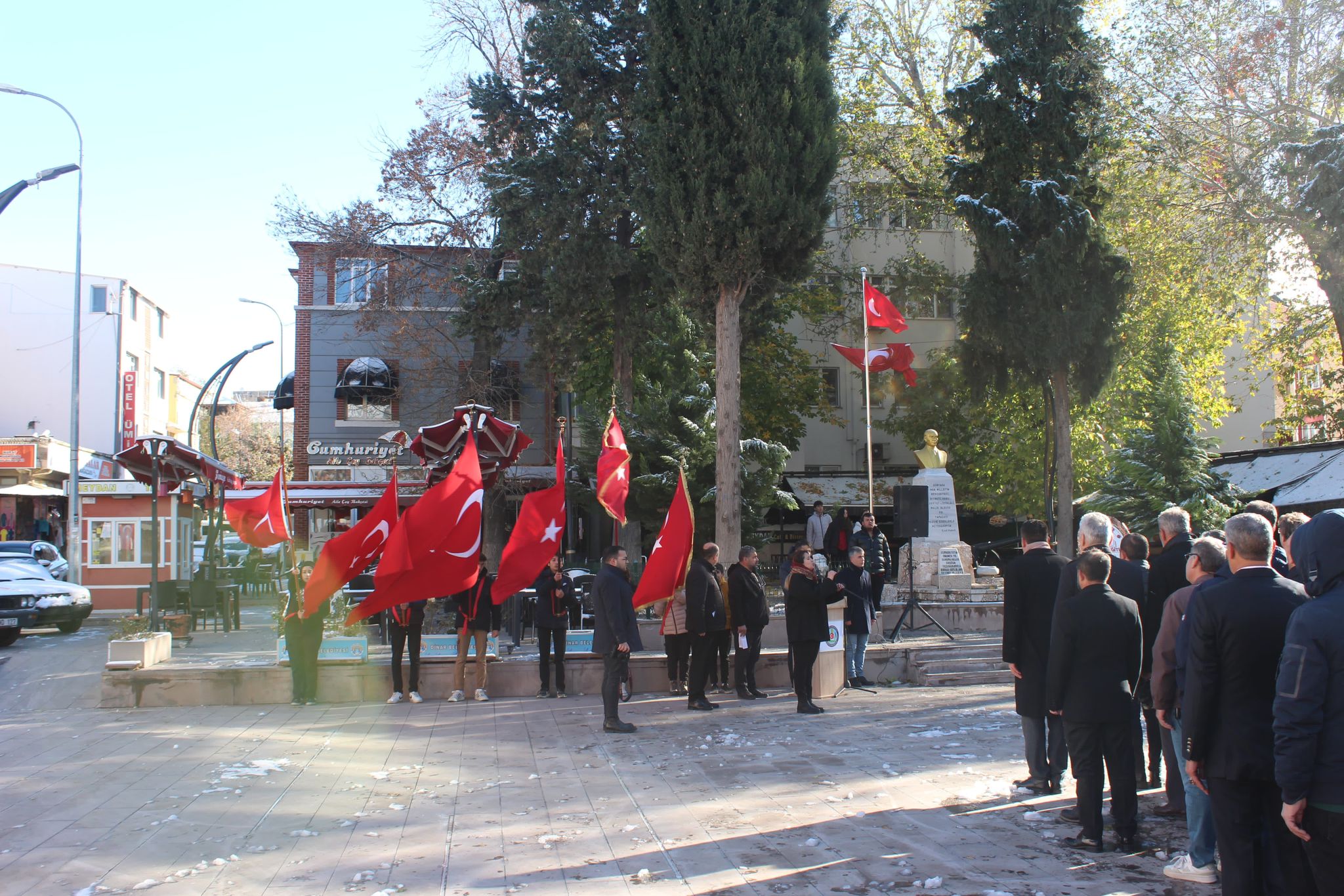 İlçemiz Cumhuriyet Meydanında gerçekleşen törende İlçe Milli Eğitim Müdürü Ufuk Taşbaş Milli Eğitim Müdürlüğü çelengini Atatürk anıtına sundu.