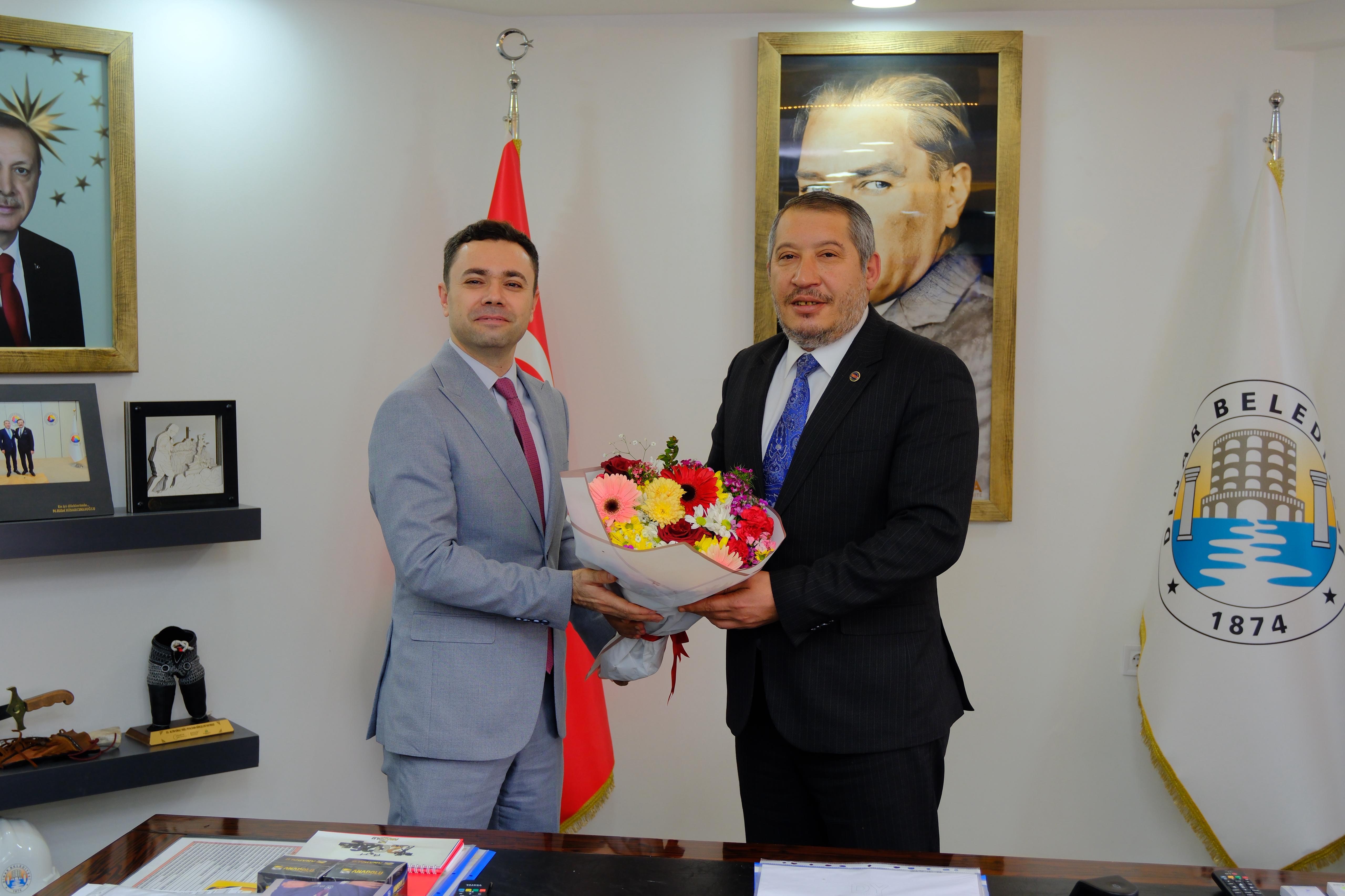 37. Vergi Haftası etkinlikleri kapsamında, Dinar Vergi Dairesi Müdürümüz Adem Göbekli, Dinar Vergi Dairesi Müdür Yardımcımız Cemal Torun ile Dinar Vergi Dairesi Personellerimiz Melek Gürbüz ve Ayhan Alkiraz, Dinar Belediye Başkanımız Veysel Topçu’yu makamında ziyaret etti.Gerçekleşen ziyarette verginin toplum ve ülke ekonomisi açısından taşıdığı önem vurgulanırken, kamu hizmetlerinin sürdürülebilirliğinde vergi bilincinin büyük rol oynadığı ifade edildi. Nazik ziyaretlerinden dolayı Vergi Dairesi heyetine teşekkür eden Belediye Başkanımız Veysel Topçu, 37. Vergi Haftası’nı kutlayarak tüm vergi dairesi çalışanlarına görevlerinde başarılar diledi.Dinar Belediyesi Haber Bülteni