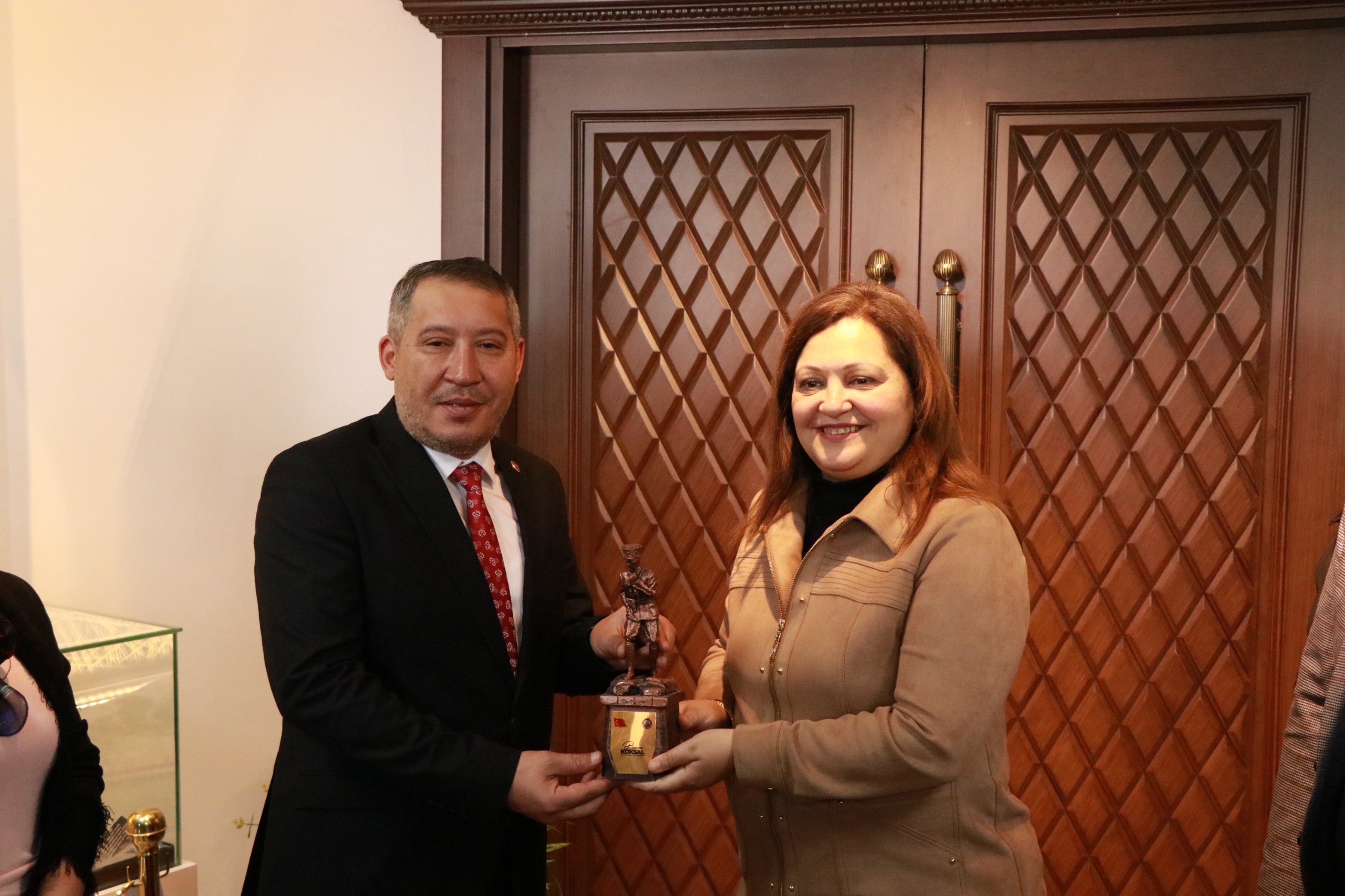 Afyonkarahisar Belediye Başkanımız Burcu Köksal, Dinar Belediye Başkanımız Veysel Topçu’yu ziyaret etti.