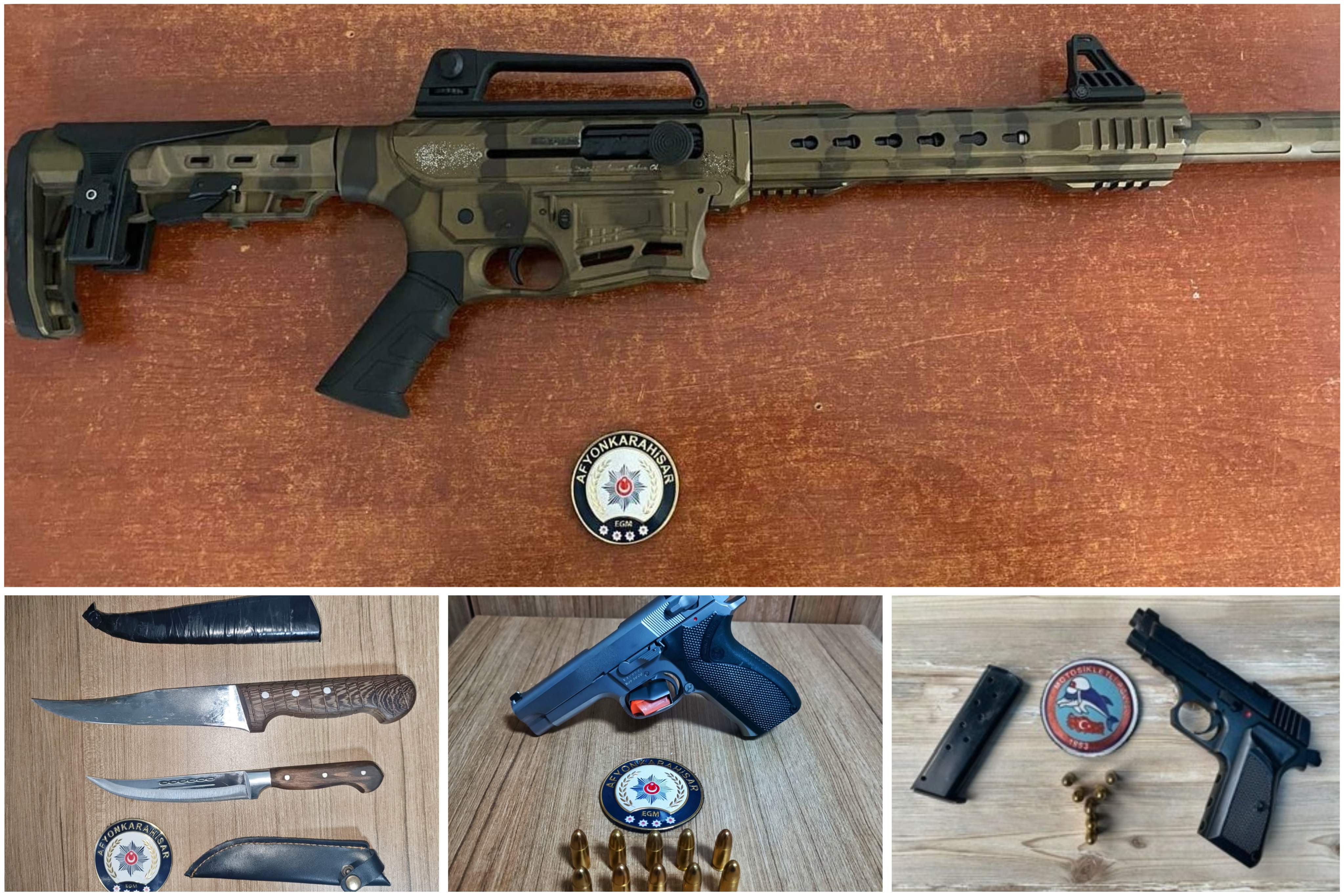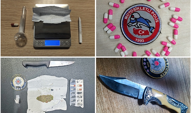 Afyonkarahisar İl Emniyet Müdürlüğü görevlilerimizce 17 – 23 Mart 2025 tarihleri arasında; • Aranması olan şahıslara yönelik yapılan çalışmalar,• Şok uygulamalar,• İlimizde bulunan Kız Öğrenci Yurtları çevresi,• İl genelinde yapılan tüm uygulama ve kontrollerde; 7.598 şahıs sorgusu, 2.339 araç sorgusu yapılmış, aranması olan şahıslara yönelik olarak yapılan yakalama çalışmaları neticesinde hapis cezası bulunan 4 şahıs ve ifadesinin alınmasına yönelik 9 şahıs olmak üzere toplam 13 şahıs yakalanmış, Yapılan uygulama ve kontrollerde 4 adet tabanca, 1 adet tüfek, 23 adet bıçak ve 33 adet fişek, 4,4 gr uyuşturucu madde, 1,7 gr uyuşturucu madde, 2 adet uyuşturucu madde, 43 adet uyuşturucu madde ele geçirilmiştir. Toplamda 47 şahsa ve 30 araca idari para cezası uygulanmıştır. “Kumar Oynanması İçin Yer ve İmkan Sağlama” suçundan yürütülen 1 tahkikatta 1 şüpheli yakalanarak adli işlem uygulanmış, 4 şahsa idari para cezası uygulanmıştır. Ele geçen 23 adet kesici ve delici alet (bıçak) ile ilgili olarak 23 şahsa idari para cezası uygulanmıştır.