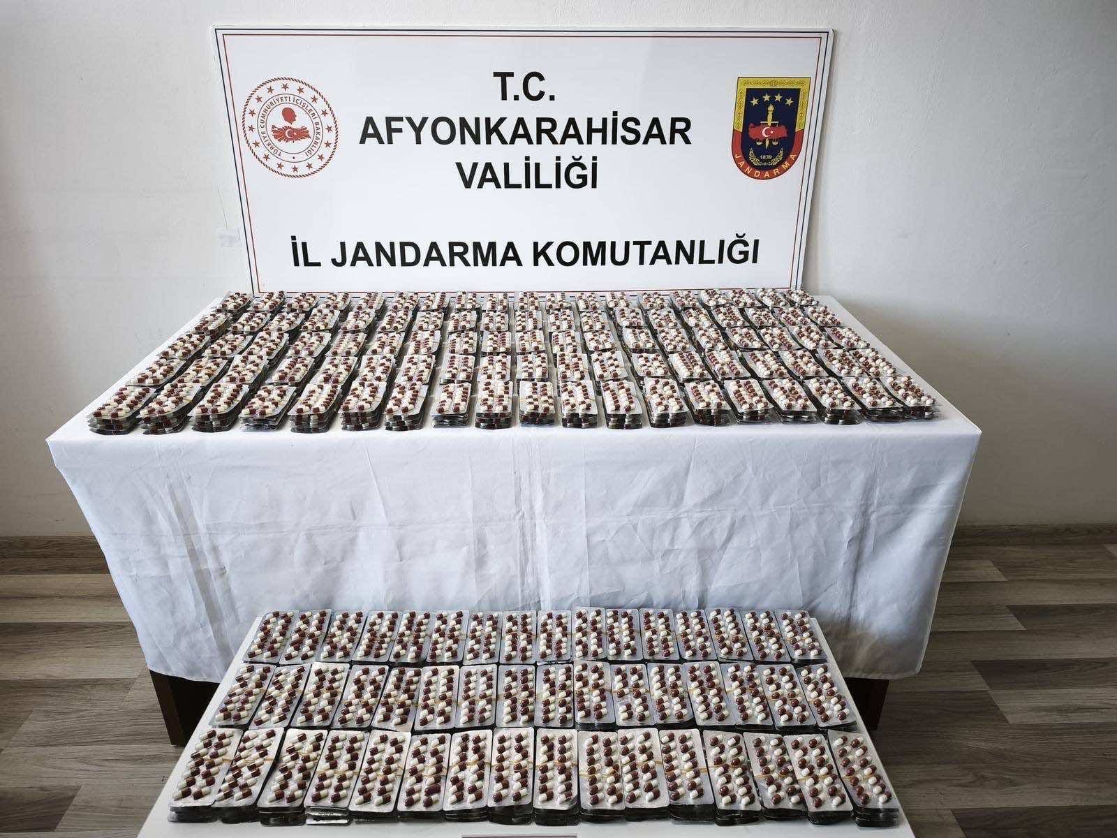 Afyonkarahisar İl Jandarma Komutanlığınca; Afyonkarahisar-Uşak karayolundabir yolcu otobüsünde yapılan adli aramada;(8190) Adet Sentetik Uyuşturucu Hap,(2) Adet Cep Telefonu ele geçirilmiştir.G.Ç. isimli şüpheli şahıs hakkında, Uyuşturucu veya Uyarıcı Madde İmal ve Ticareti suçundan gerekli yasal işlem yapılmış olup, çıkarıldığı mahkemece tutuklanarak Ceza İnfaz Kurumuna teslim edilmiştir.Afyonkarahisar İl Jandarma Komutanlığı, suç ve suçlularla mücadelesine kanunlar çerçevesinde kararlılıkla devam etmektedir.