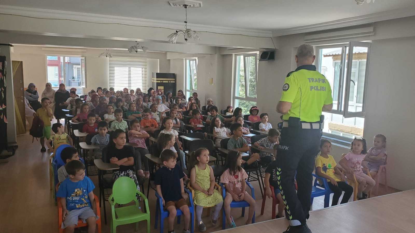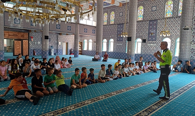 Toplumuzun geleceği olan çocuklarımızın trafik kuralları konusunda bilinçlenmesi amacıyla İl Emniyet Müdürlüğümüzce yaz Kur’an kursuna devam eden çocuklarımıza uygulamalı ve teorik trafik eğitimi verildi.