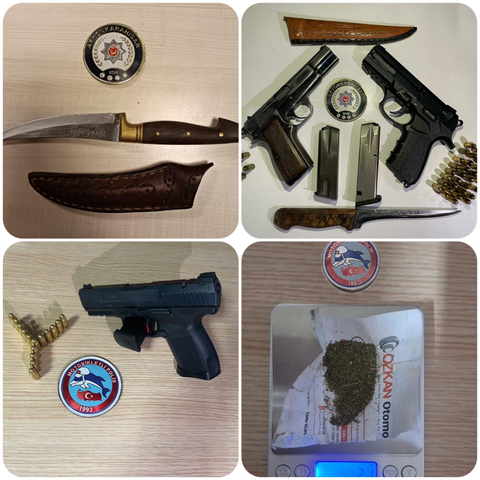 Son 3 gün içerisinde il merkezi genelinde yapılan şok uygulamalarda 6 ruhsatsız silah, çok sayıda maksat dışı taşınan bıçak, çeşitli miktarlara esrar,