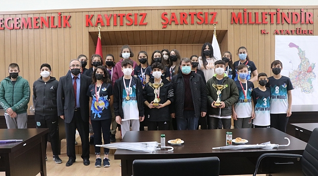 Afyonkarahisar Şampiyonu olan Okul Voleybol takımı Başkan Sarı'yı ziyaret etti