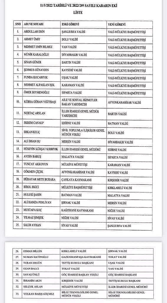 Resmi Gazete' de yayımlanan kararnameye göre Afyon Valisi Gökmen Çiçek Kayseri Valiliğine yine kararnameye göre Afyonkarahisar Valiliğine yeni vali Kübra Güran Yiğitbaşı atandı. Yeni Valimiz Kübra Güran Yiğitbaşı'nın ataması yapılmadan önce ki görevi ise Aile ve Sosyal Hizmetler Bakan Yardımcısı olarak görev yapıyordu.