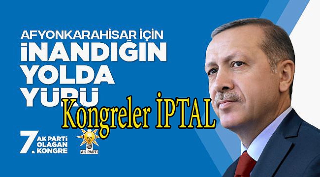 AK PARTİ Afyonkarahisar İl Başkanlığından DuyuruSaygıdeğer AK Parti ailesi, Sağlık Bakanlığımızın yürüttüğü coronavirüs ile ilgili tedbirler kapsamında, alınan bilim kurulu kararları ve son gelişmeler dikkate alınarak bu hafta sonu yapılması planlanan kongrelerimiz, Cumhurbaşkanımız ve Genel Başkanımız Sayın Recep Tayyip Erdoğan'ın takdir edeceği ikinci bir tarihe kadar ertelenmiştir. Organizasyonlar dolayısıyla emek sarf eden başkanlarımıza ve teşkilatlarımıza teşekkür ederiz.AK Parti Afyonkarahisar İl Başkanlığı