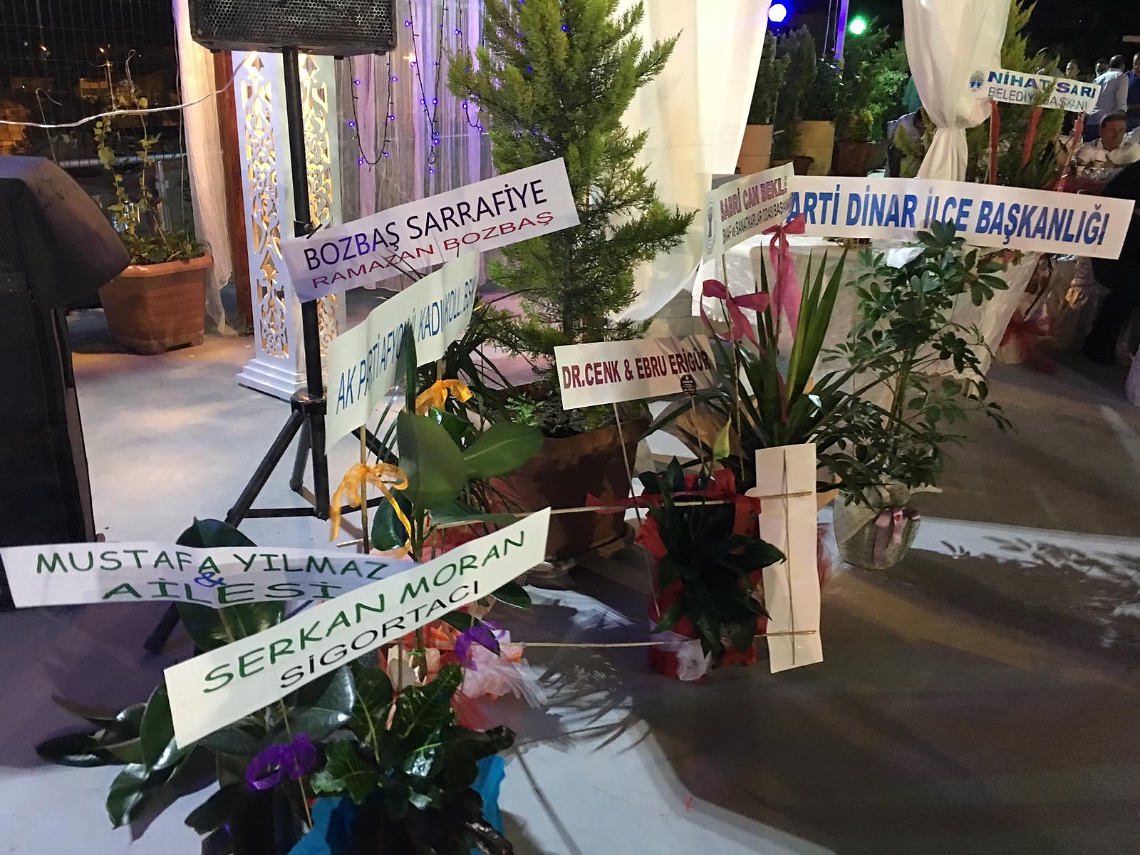 Dinar’ın tanınmış ailelerinden AK Partili Neşe Taşpınar ve Hastane memuru Bülent Taşpınar’ın kızı Merve Taşpınar ile Pancar Kooperatifi Emekli şoför Mustafa Akçan ve merhum Sultan Akçan’ın oğlu Ramazan Akçan’a Dinar Park Ala Düğün Salonunda görkemli bir düğün yapıldı.Dinar Belediyesi Meclis Üyesi Neşe Taşpınar ve Hastane memuru Bülent Taşpınar ile Pancar Kooperatifi Emekli şoför Mustafa Akçan davetlileri salonun girişinde karşıladı. Katılımın çok yoğun olduğu düğünde Taşpınar ve Akçan ailelerinin dostları genç çiftleri bu güzel ve özel günlerinde yalnız bırakmadı. Koronavirüs tedbirleri kapsamında bütün ayrıntıların incelikle düşünüldüğü düğünde salon girişinde bir görevli, gelen misafirlerin ateşini ölçtü. Maskesi olmayan davetlilere maske dağıtıldı ayrıca masalara da dezenfektan kiti konuldu.Koronavirüs salgın hastalığına rağmen AK partili Neşe Taşpınar’ın kızının düğününe Türkiye’nin çeşitli il ve ilçelerinden Medya, siyaset, spor ve iş dünyasının önemli isimleri katıldı.Belediye meclis üyesi Neşe Taşpınar kızının düğününe katılan davetlilere ‘bizleri bu mutlu günümüzde yalnız bırakmadıkları için teşekkür ediyor herkese böyle mutlu günler diliyorum’ dedi. Dinar Gündem Gazetesi