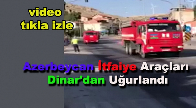 Dinar ilçesinden Azerbeycan itfaiye araçları uğurlandı. Azerbaycan'ın Türkiye'ye yangın felaketiyle mücadele de destek için gönderdiği 53 itfaiye aracı ve 220