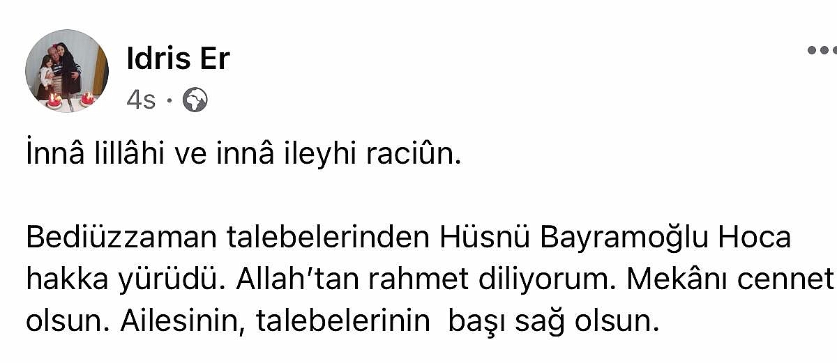 Nur Cemaati Meşveret Grubu lideri Hüsnü Bayramoğlu yaşamını yitirdi Ak Parti Dinar İlçe Başkanı İdris Er’de Nur Cemaati Meşveret Grubu lideri Hüsnü Bayramoğlu’nun vefatından