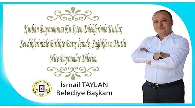 Başkan Taylan mesajında; yardımlaşma, dayanışma ve şefkat duygularının zirveye ulaştığı mübarek Kurban Bayramı’na ulaşmanın heyecanı ve mutluluğu içindeyiz. Öncelikle bu önemli ve anlamlı günlerin ülkemiz, İslam alemi ve insanlık için hayırlara vesile olmasını diliyor; daha nice bayramlara sağlık, mutluluk ve huzur içinde ulaşmayı Yüce Rabbimiz’den temenni ediyorum. Bayramlar, toplumda karşılıklı sevgi ve saygı bağlarını pekiştiren, dargınlıkları unutturup barıştıran, kardeşçe kucaklaştıran, birlik ve beraberliği, bir arada yaşama arzusunu kuvvetlendiren müstesna günlerdir. Bu duygu ve düşüncelerle halkımızın Kurban Bayramlarını en içten dileklerimle kutlar, sevgi ve saygılarımı sunarım.İsmail TaylanDazkırı Belediye Başkanı