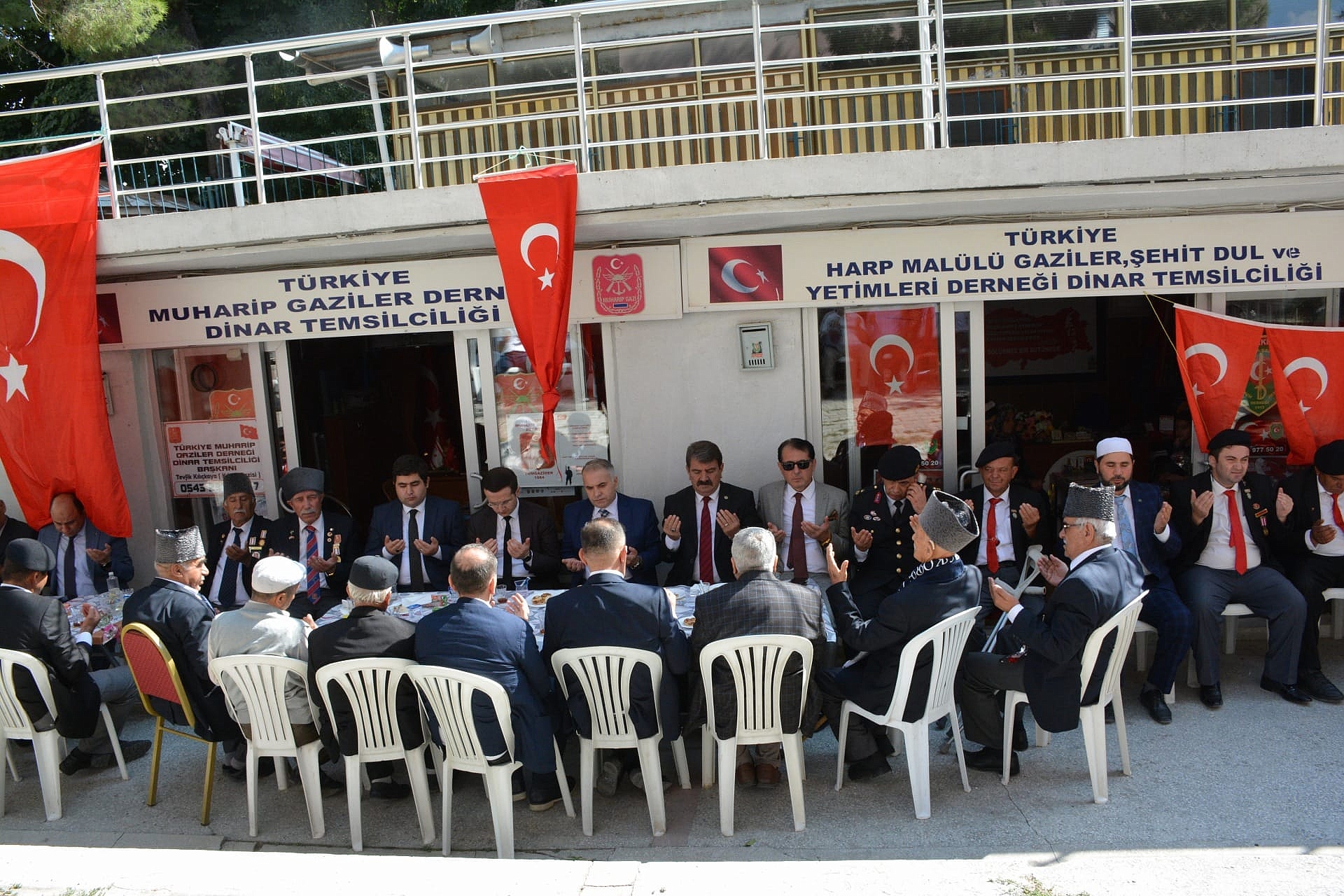 Cumhuriyet Meydanımızda gerçekleşen programın ardından Dinar Kaymakamı Kemal Duru, Dinar Belediye Başkanımız Nihat Sarı, protokol üyeleri, STK Temsilcileri ve daire amirleri Gaziler Derneğine ziyaret gerçekleştirdi.