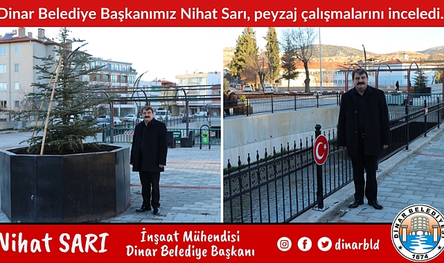 Dinar Belediye Başkanımız Nihat Sarı, peyzaj çalışmalarını incelediBelediye Başkanımız Nihat Sarı, Menderes Nehri Islahı projemiz kapsamında ilçemizde Atatürk park olarak bilinen güzergahta yapılan peyzaj çalışmalarını inceledi.