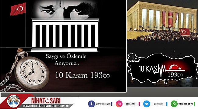 Dinar Belediye Başkanımız Nihat Sarı, Cumhuriyetimizin kurucusu Gazi Mustafa Kemal Atatürk’ün ebediyete intikalinin 83’üncü yıl dönümü dolayısıyla bir mesaj yayımladı.