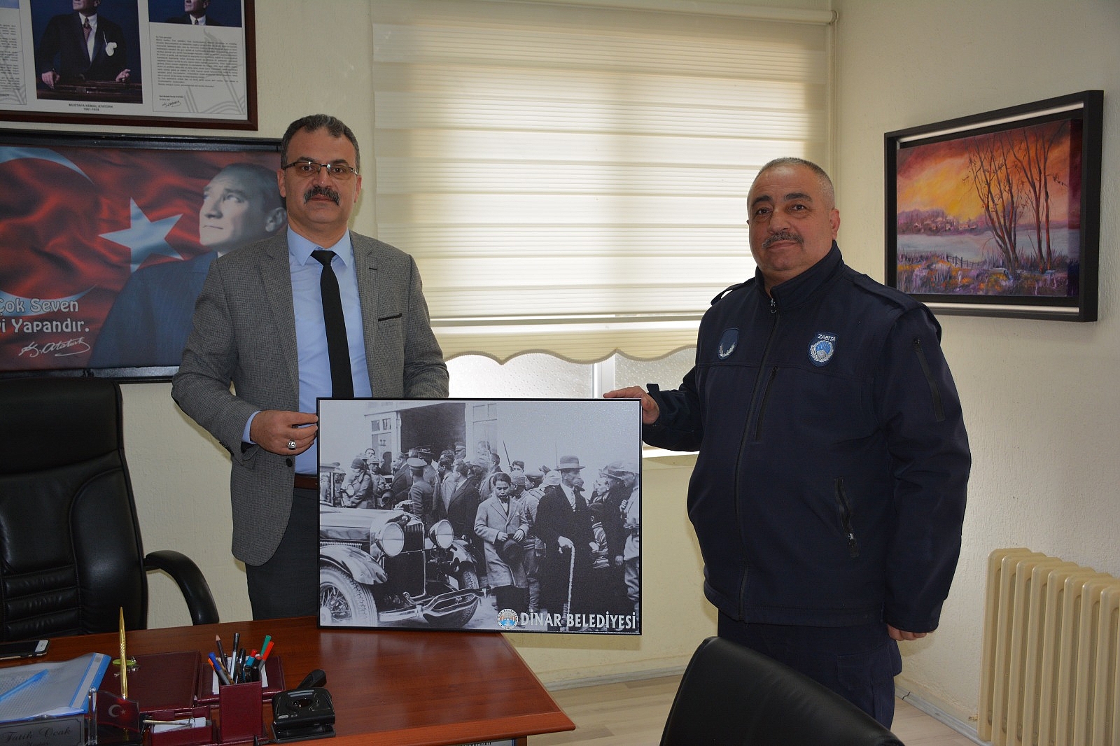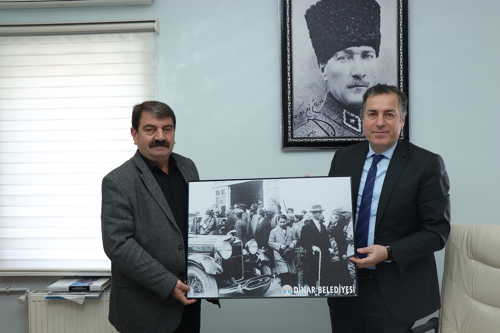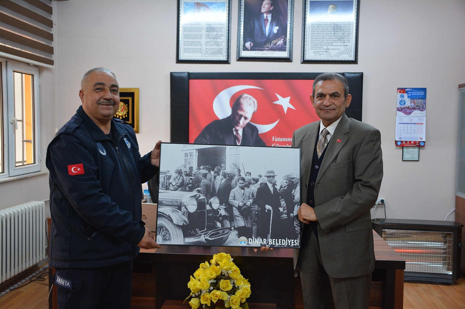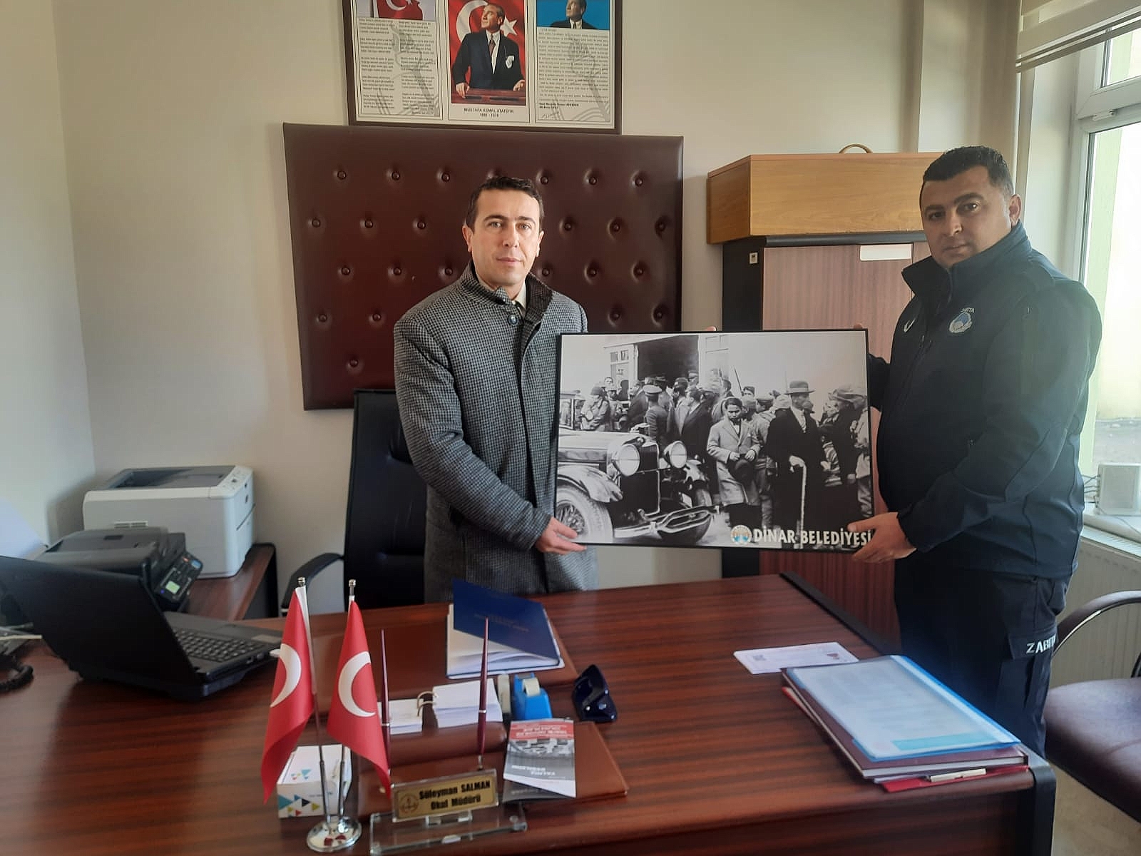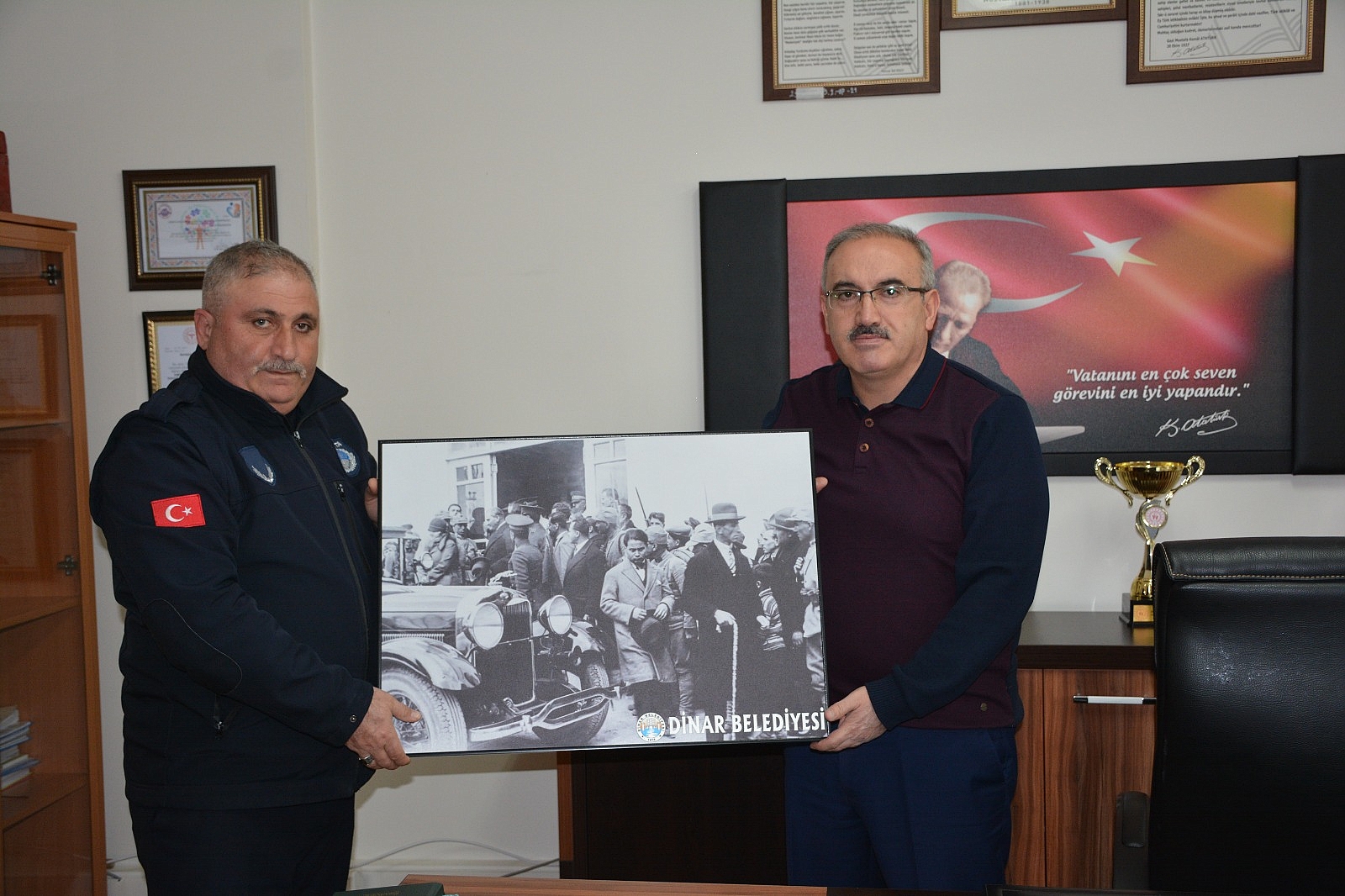 Dinar İlçe Kaymakamı Selami Kapankaya’ya, Dinar İlçe Milli Eğitim Müdürü Ufuk Taşbaş’a ve Atatürkçü Düşünce Derneği Şube Başkanı Kenan Özdemir’e Atatürk’ün Dinar’a gelişinin görselinin yer aldığı tabloyu hediye eden Belediye Başkanımız Nihat Sarı, 12 Mart Atatürk’ün Dinar’a gelişinin yıldönümü olması dolayısıyla belediye olarak anlamlı bir çalışmaya imza attıklarını ifade ederek, “Ülkemizin kurucusu Gazi Mustafa Kemal Atatürk’ü ve tüm silah arkadaşlarını bir kez daha sevgi, saygı ve minnetle anıyorum.” Dedi.
