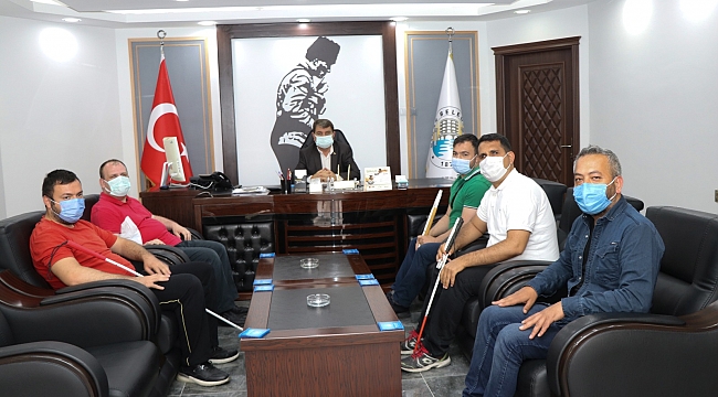 Ziyarette; Afyonkarahisar 15 Temmuz Kocatepe Görme Engelliler Gençlik ve Spor Kulübü Başkanı Muhammet Mustafa Başyiğit ve yönetimi Sivas’ta düzenlenecek olan müsabakalar için destek talebinde bulundular.