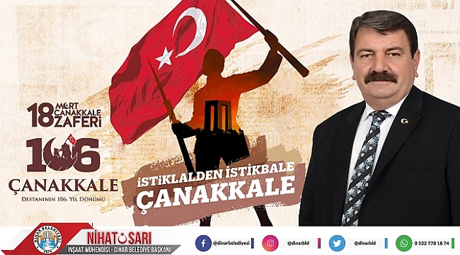 Dinar Belediye Başkanımız Nihat Sarı 18 Mart Çanakkale Zaferi ve Şehitleri Anma Günü dolayısıyla bir mesaj yayımladı.