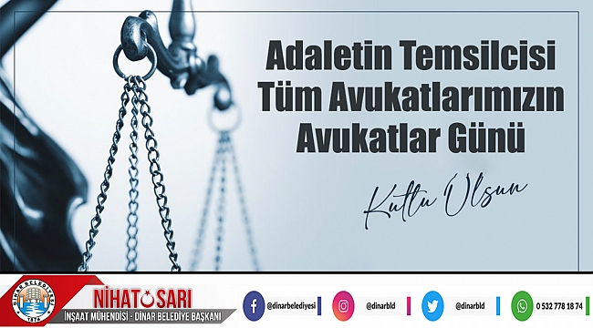 Dinar Belediye Başkanımız Nihat Sarı, 5 Nisan Avukatlar Günü dolayısıyla bir mesaj yayımladı.