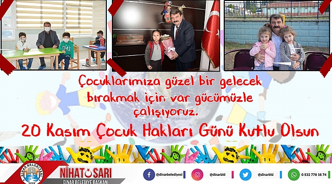 Dinar Belediye Başkanımız Nihat Sarı 20 Kasım Dünya Çocuk Hakları Günü dolayısıyla bir mesaj yayımladı.