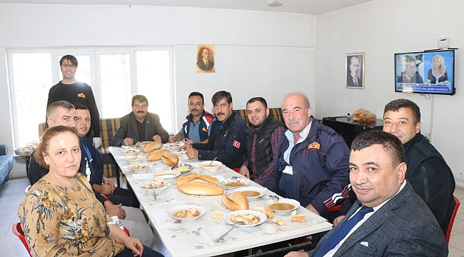 Ziyarette; İtfaiye personelimizin İtfaiyeciler Haftasını kutlayan Belediye Başkanımız Nihat Sarı, personellerle bir süre sohbet ederek günün vardiya İtfaiye personelleri ile öğlen yemeği yedi.