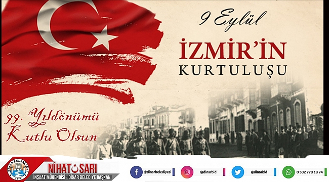 Dinar Belediye Başkanımız Nihat Sarı, İzmir’in düşman işgalinden kurtuluşunun 99. Yıldönümü dolayısıyla bir mesaj yayımladı.