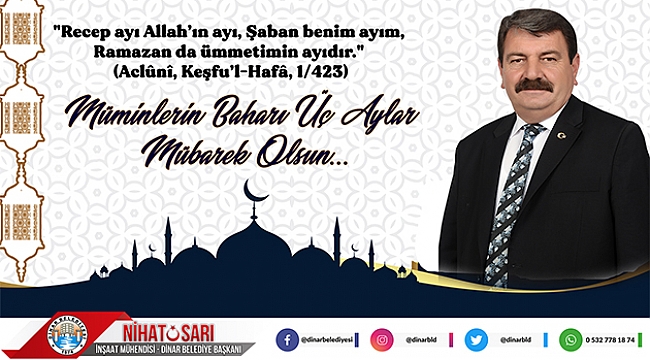 Dinar Belediye Başkanımız Nihat Sarı, Mübarek Üç Ayların başlangıcı dolayısıyla bir mesaj yayımladı.
