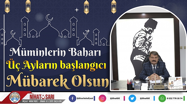 Dinar Belediye Başkanımız Nihat Sarı, Mübarek Üç Ayların başlangıcı dolayısıyla bir mesaj yayımladı. Belediye Başkanımız Nihat Sarı mesajında; "Mübarek üç ayla