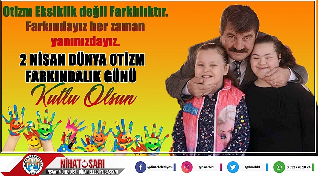 Dinar Belediye Başkanımız Nihat Sarı, 2 Nisan Otizm Farkındalık Günü olması dolayısıyla bir mesaj yayımladı.