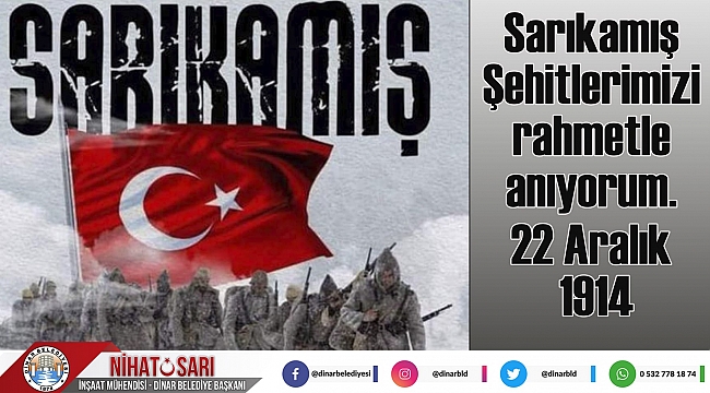 Dinar Belediye Başkanımız Nihat Sarı Sarıkamış Şehitlerinin ölüm yıldönümü olması dolayısıyla bir anma mesajı yayımladı.