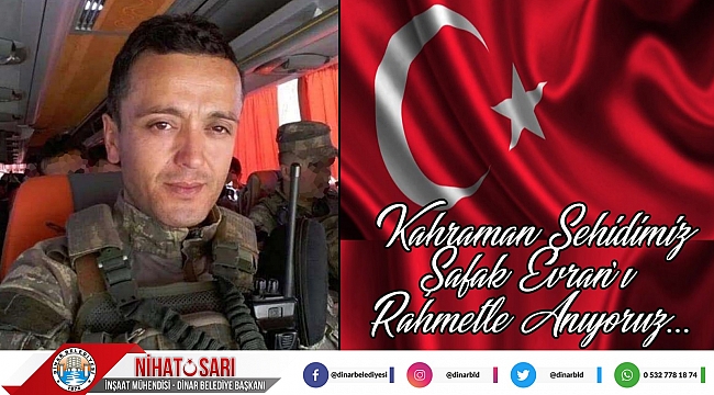 Dinar Belediye Başkanımız Nihat Sarı, 2019 yılında Şırnak Cehennem Deresinde teröristler ile çıkan çatışmada Şehit Düşen Şehidimiz Teğmen Şafak Evran’ın şehadetinin yıl dönümü dolayısıyla bir mesaj yayımladı.
