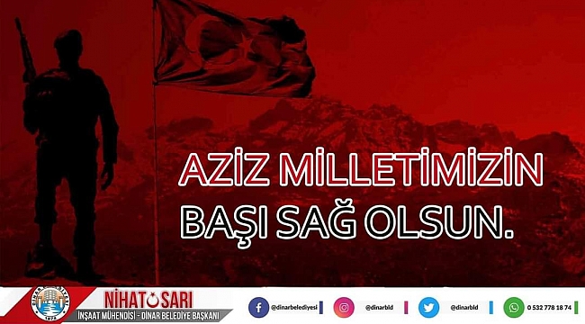 Dinar Belediye Başkanımız Nihat Sarı, Hatay Kırıkhan’da, boş olarak intikal eden tank taşıyıcı aracının ön tekerinin patlaması sonucu yoldan çıkarak fabrikanın duvarına çarpması sonucu şehit olan Sinanpaşa İlçesine bağlı Bulca koyünden olan Ulaş.Uzm. Çvş Necati Yatkak ve 1 askerimiz için başsağlığı mesajı yayımladı.Belediye Başkanımız Nihat Sarı mesajında; " Hatay Kırıkhan'da ön tekerin patlamasının ardından yoldan çıkarak fabrikanın duvarına çarpan tankta yangın çıkması sonucu 2 askerimizin şehit olduğunu ve bir şehidimizin Sinanpaşa İlçemize bağlı Bulca köyünden Ulaş.Uzm. Çvş Necati Yatkak'ın olduğunu derin bir üzüntüyle öğrenmiş bulunmaktayım.Şehitlerimize yüce Allah'tan rahmet ailelerine ve yakınlarına başsağlığı dilerim. Aziz milletimizin başı sağolsun."ifadelerini kullandı.