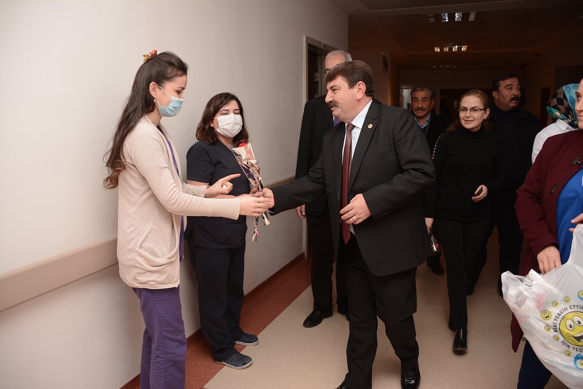 Huzur evi ziyaretinin tamamlanmasının ardından ise Dinar Devlet Hastanesi polikliniklerde kalan hastaları ziyaret ederek geçmiş olsun dileklerini ileten Başkanımız Nihat Sarı, hastalara ve hastane personellerine karanfil takdim ederek yeni yıllarını kutladı.