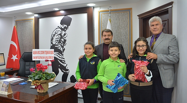 Teşekkür ziyaretinde; Okul Müdürü Bayram Yüksel ve Öğrenciler tarafından Dinar Belediye Başkanımız Nihat Sarı’ya çiçek takdim edilirken, Dinar Belediye Başkanımız Nihat Sarı tarafından ise öğrencilerimize günün anısına hediye paketi takdim edildi.