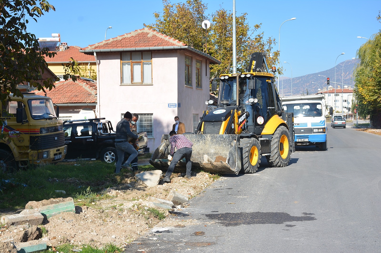Dinar Belediye Başkanımız Nihat Sarı, ilçemiz de yol genişletme, su kanallarını yenileme ve asfalt serim çalışmalarının