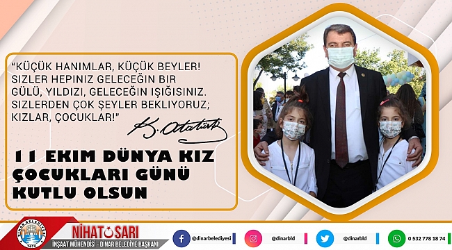 Dinar Belediye Başkanımız Nihat Sarı, 11 Ekim Dünya Kız Çocukları Günü nedeniyle bir mesaj yayımladı.