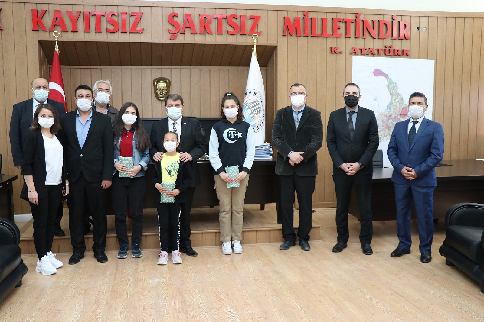 Fatih Ortaokulundan 4 öğrencimiz Dinar Belediye Başkanı oldu.Dinar Belediye Başkanımız Nihat Sarı’nın koltuğuna oturan öğrenciler ise belediye birim amirlerini çağırarak çalışmalar hakkında bilgiler aldılar.