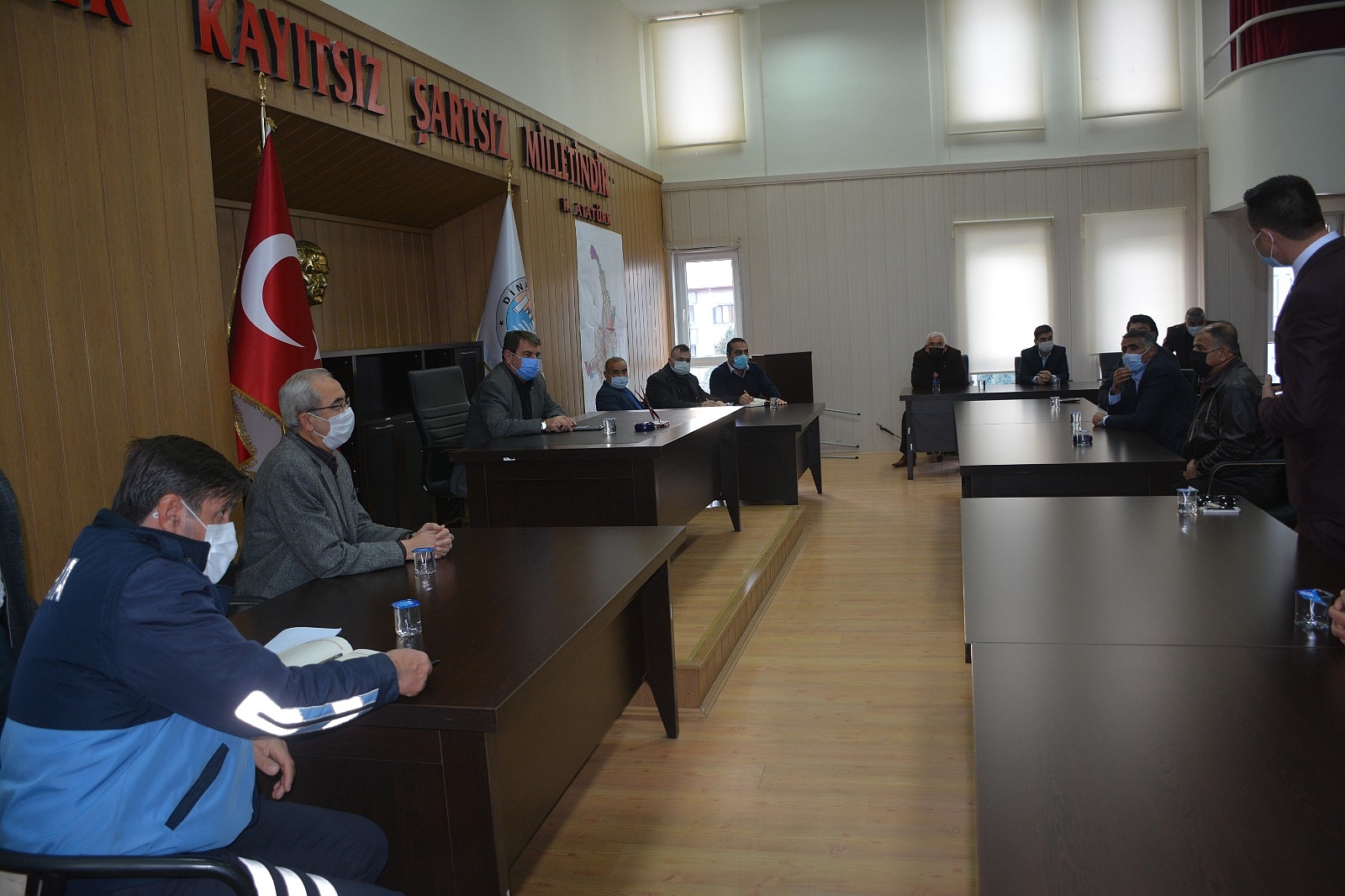 Dinar Belediye Başkanımız Nihat Sarı, merkez mahalle muhtarlarının talebi üzerine belediye meclisi toplantı salonunda mahalle muhtarları ile bir araya geldi.