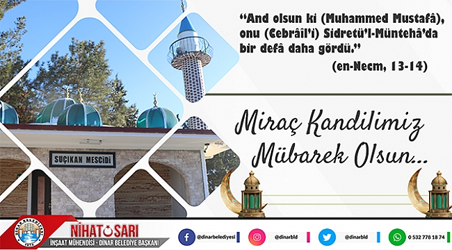 Dinar Belediye Başkanımız Nihat Sarı, Miraç Kandili dolayısıyla bir mesaj yayımladı.