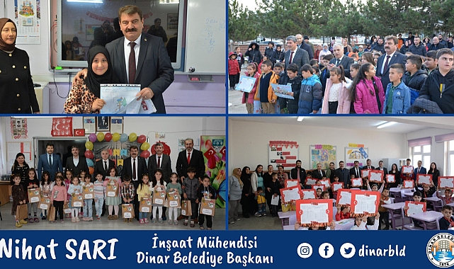 Dinar Belediye Başkanımız Nihat Sarı,öğrencilerimizin karne sevinçlerine ortak oldu. 2024-2025 Eğitim-Öğretim yılı 1. Dönemin sona ermesi dolayısıyla öğrencilerimiz karnelerine kavuştu. Belediye Başkanımız Nihat Sarı,İlçe Kaymakamımız Kemal Duru ve İlçe Milli Eğitim Müdürümüz Ufuk Taşbaş ile birlikte Şehit Cengiz Topel İlkokulu ve Hürriyet Ortaokulunda öğrencilerimizin karnelerini verdi. Karne dağıtımının ardından tatilde yapmaları gerekenler konusunda tavsiyelerde bulunan Belediye Başkanımız Nihat Sarı aynı zamanda Belge alan öğrencilerimizi tebrik etti. Karne dağıtımının ardından Belediye Başkanımız öğrencilerimizle birlikte İstiklal Marşını okudu ve iyi tatiller diledi.Dinar Gündem Gazetesi