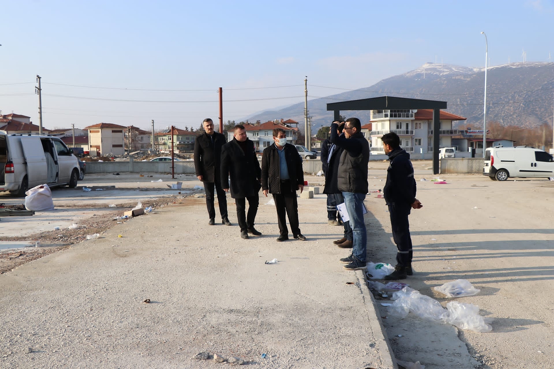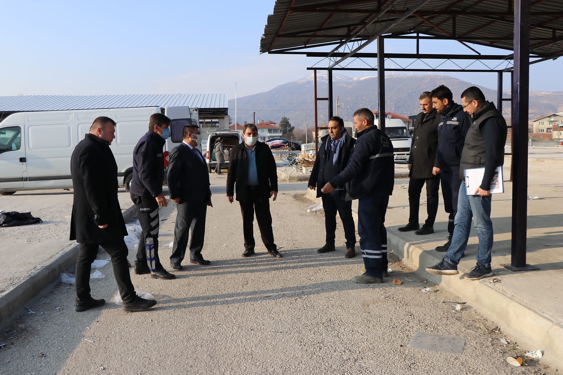 Dinar Belediye Başkanımız Nihat Sarı, ilgili birim amirleri ile birlikte ilçemiz Salı Pazarında devam eden ve yapılacak olan çalışmalar ile ilgili incelemelerde