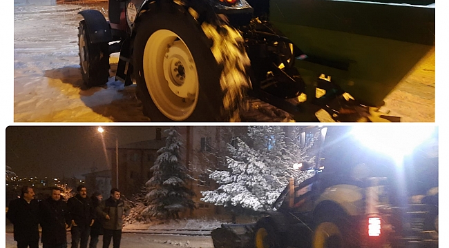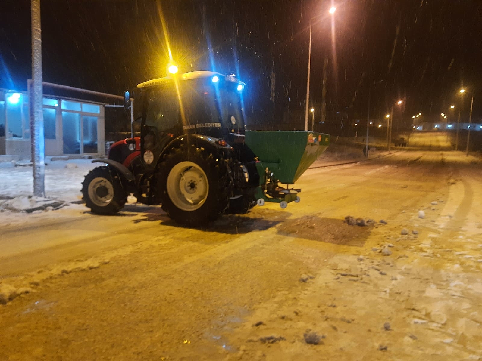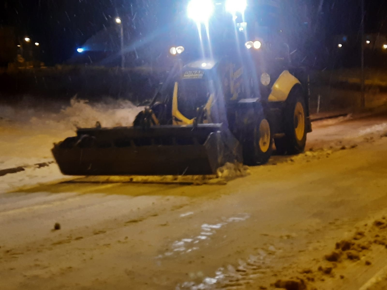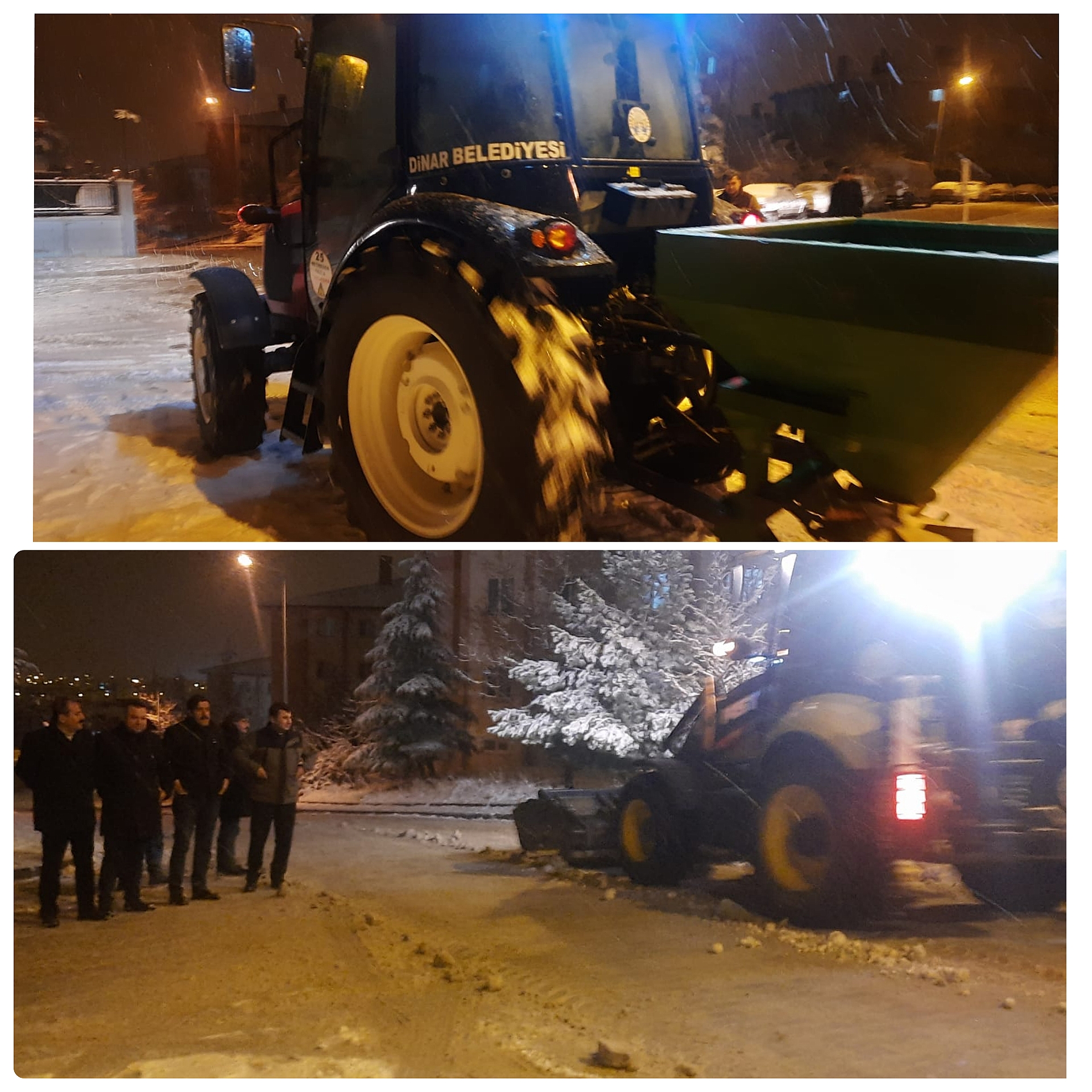Dinar Belediye Başkanımız Nihat Sarı'nın talimatları doğrultusunda belediyemiz ekipleri akşam saatlerinde başlayan kar yağışı sonrası buzlanma riski olan yo