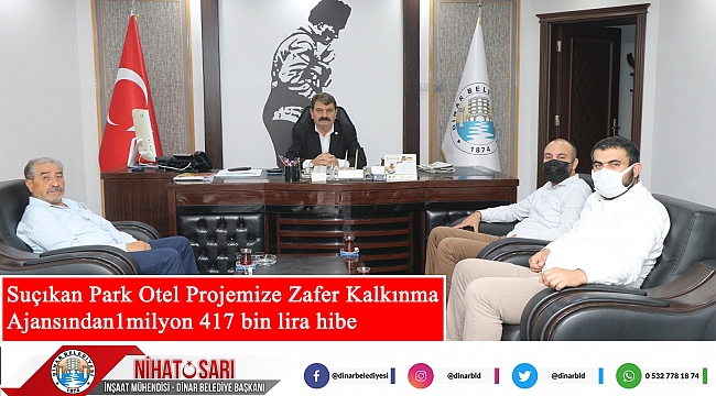 Toplantı sonrasında bir açıklama yapan Belediye Başkanımız Nihat Sarı, “Dinarımızın simgesi olan Suçıkan Park Tesislerinde başlattığımız revize çalışmalarımız kapsamında Suçıkan Park Otelimizi tekrar faaliyete geçirmek için Zafer Kalkınma Ajansına projemizi sunduk. 1 Milyon 417 bin lira hibe verilmesi ile birlikte Zafer Kalkınma Ajansı yetkilileri ile ihale süreci ile ilgili görüşmemizi gerçekleştirdik. Projemize desteğin verilmesinde emeği geçen başta Milletvekilimiz Ali Özkaya olmak üzere Afyonkarahisar Valimiz Gökmen Çiçek’e ve tüm emeği geçenlere ayrı ayrı teşekkür ediyorum. İnşallah Otelimiz Dinarımıza ve Suçıkanımıza yakışır bir hale gelerek vatandaşlarımızın hizmetine sunulacaktır. İlçemize hayırlı uğurlu olsun.” dedi.