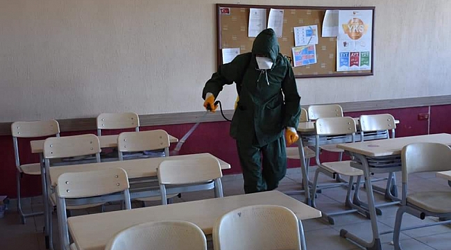 Dazkırı Belediyesi tarafından coronavirüsten korunmak amaçlı ilçede bulunan okul, banka, belediye binası, kaymakamlık binası ve kamuya açık, kapalı veya özel al