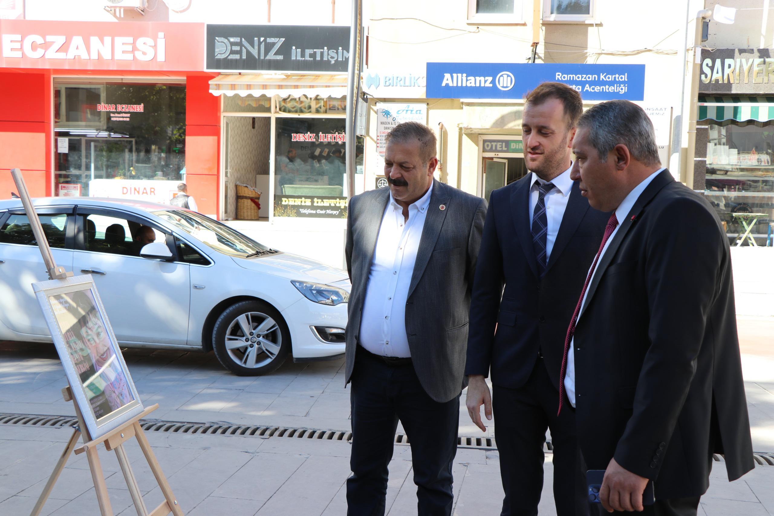 Dinar Belediye Başkanımız Veysel Topçu, İl Genel Meclis Üyemiz Nihat Çalışkan ile birlikte ilçemiz Cumhuriyet Meydanı’nda kurulan Barış Turan’ın 7. Kişisel Gelişim Resim Sergisi’ni ziyaret etti.“Babama ve Hayata 3-0 Yenik Başlayan Tüm Çocuklara” temalı sergide yer alan eserleri ilgiyle inceleyen Belediye Başkanımız Veysel Topçu, resimlerin her birinin derin anlamlar taşıdığını ve toplumda farkındalık yaratacak nitelikte olduğunu belirtti.Sergiyi gerçekleştiren Görsel Sanatlar Öğretmeni Barış Turan’ı çalışmalarından dolayı tebrik eden Belediye Başkanımız Veysel Topçu, bu tür sanatsal etkinliklerin Dinar’ın kültürel gelişimine katkı sağladığını ve özellikle gençlerin sanata yönlendirilmesi açısından büyük önem taşıdığını vurguladı.Dinar Gündem Gazetesi