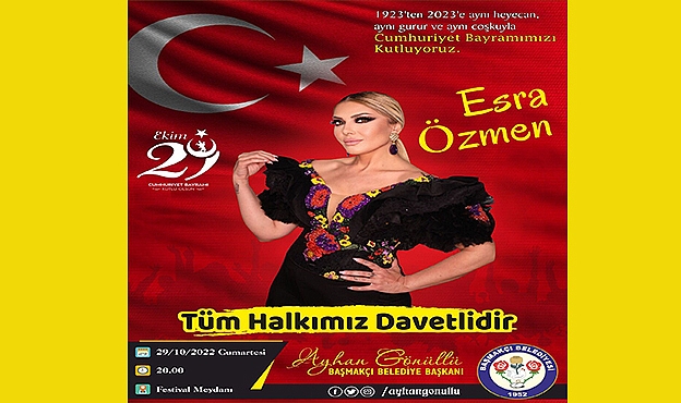 Aynı Gurur Ve Aynı Coşkuyla Başmakçı Belediye Başkanlığı Olarak Başmakçı Festival Meydanında 29 Ekim Cumartesi Günü Saat 20:00 Esra Özmen Konserine Tüm Halkımız Davetlidir.