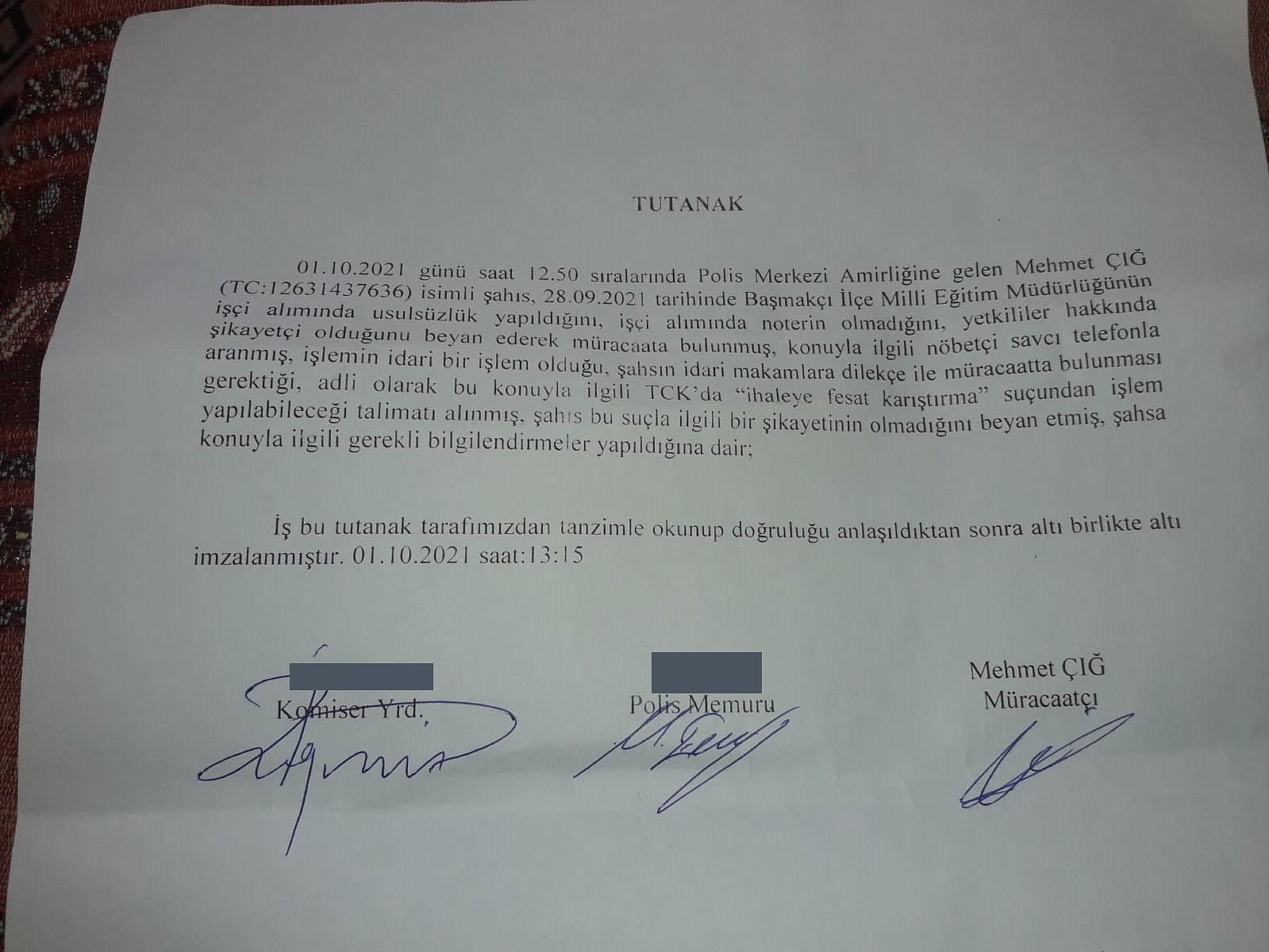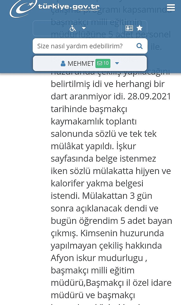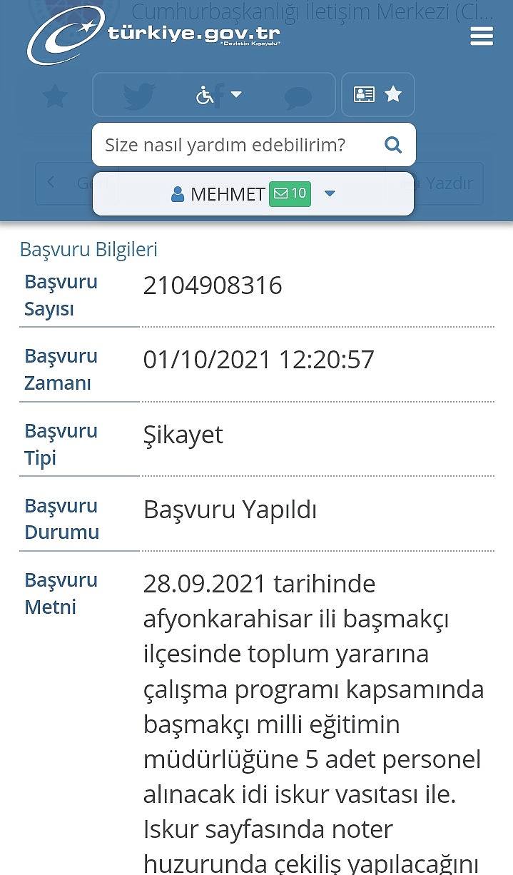 Afyonkarahisar Başmakçı İlçesinde İŞKUR aracılığı ile İlçe Milli Eğitim Müdürlüğüne bağlı okullarda çalıştırılmak üzere 5 kişinin belirlenmesi hususunda usulsüzlük olduğunu iddia eden Mehmet Çiğ gazetemiz ihbar hattından