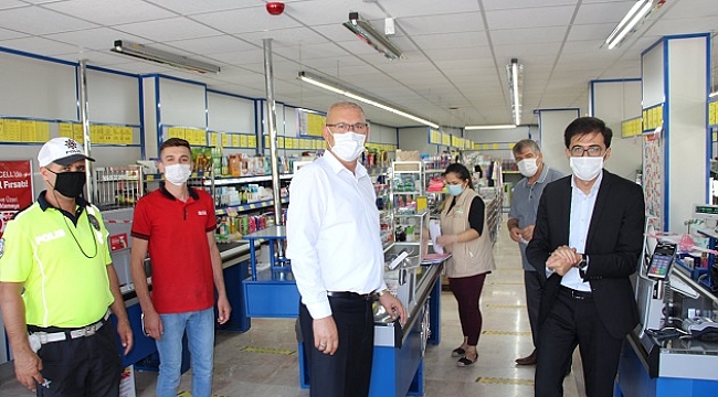 Koronavirüs Başmakçı Kaymakam Vekili Sayın Mesut COŞKUN, Başmakçı ilçesinde faaliyet gösteren işyerlerinde Covit 19 tedbirleri kapsamında ; maske, mesafe ve hijyen kuralları konusunda denetim yaparak, vatandaşlara uyarılarda bulundu.