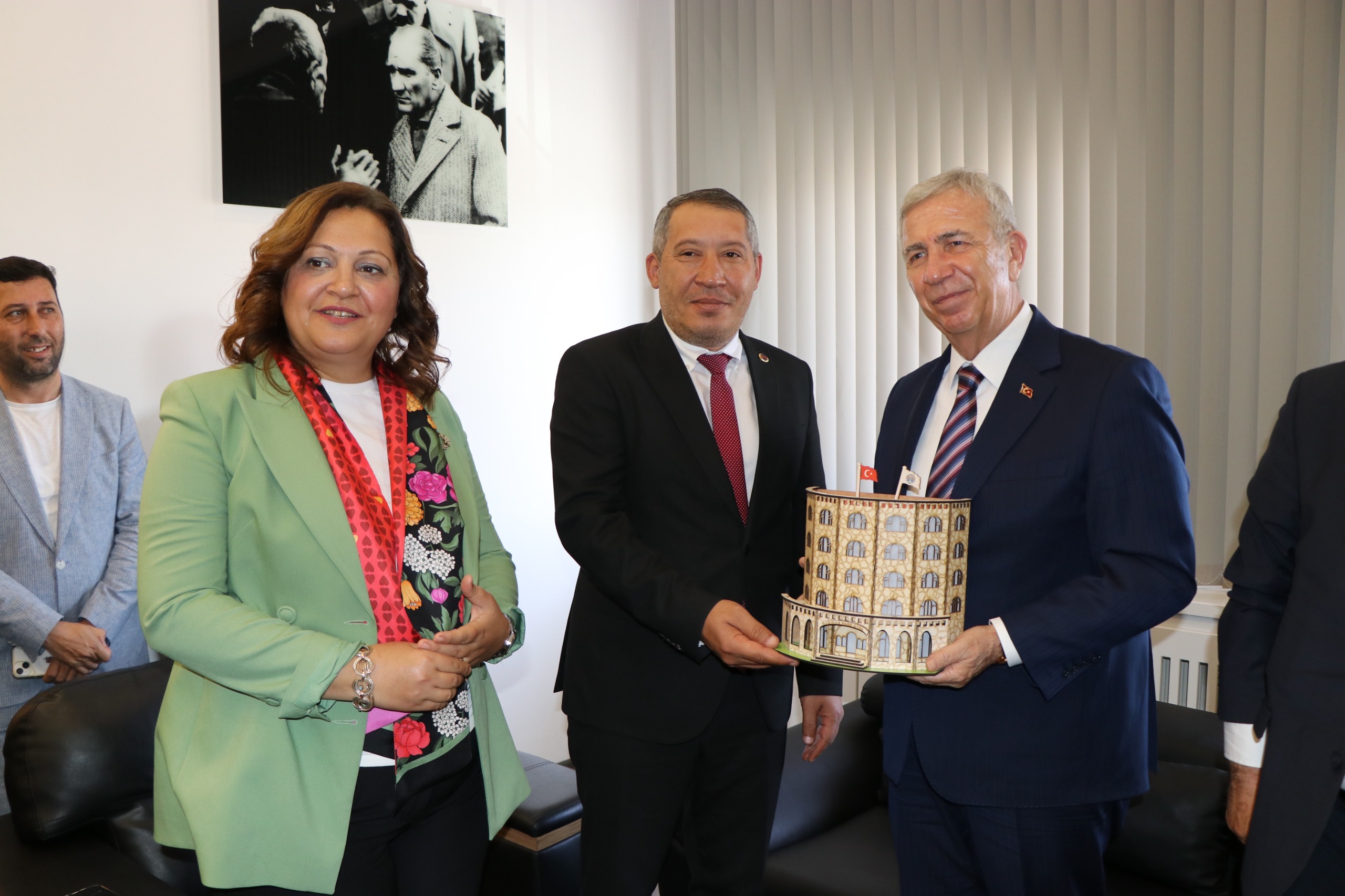 "Belediye Başkanı Topçu, Afyonkarahisar'da Gerçekleştirilen Kardeş Şehirler Buluşması Etkinliklerine Katıldı"Dinar Belediye Başkanımız Veysel Topçu, Kardeş Şehirler buluşması çerçevesinde Afyonkarahisar’da gerçekleştirilen etkinliklere katıldı. İlimiz’in kardeş şehri Ankara’nın Büyükşehir Belediye Başkanı Mansur Yavaş, Afyonkarahisar Belediye Başkanımız Burcu Köksal’ı makamında ziyaret etti. Gerçekleştirilen Ziyaret’e Dinar Belediye Başkanımız Veysel Topçu ile birlikte ilçe belediye başkanlarımız da katıldı. Toplantıda iki şehir arasındaki kardeşlik bağlarının güçlendirilmesi ve işbirliklerinin geliştirilmesi konuları ele alındı. Heyet, şehirlerinin kalkınmasına yönelik projeler üzerinde fikir alışverişinde bulunarak, ortak çalışmaların önemine vurgu yaptılar.Dinar Belediye Başkanımız Veysel Topçu, toplantının ardından Ankara Büyükşehir Belediye Başkanımız Mansur Yavaş’a ilçemizin simgesi olan Suçıkan maketini hediyesini takdim ederken “Maketini sunduğumuz İlçemiz Suçıkan Dinlenme Tesisleri’nde her sezon 500.000 in üzerinde Ankaralı vatandaşımızı ağırlamaktan büyük mutluluk duyuyoruz” ifadelerini kullandı.Ankara Büyükşehir Belediye Başkanımız Mansur Yavaş, Afyonkarahisar Belediye Başkanımız Burcu Köksal, Dinar Belediye Başkanımız Veysel Topçu ve İlçe Belediye Başkanlarımız ile birlikte esnaf ziyaretleri gerçekleştirildi. Başkanımız Veysel Topçu, bu ziyaret sırasında esnafın taleplerini ve sorunlarını dinleyerek çözüm önerileri üzerine sohbet etti. Ardından düzenlenen halk buluşmasında vatandaşlarla bir araya gelen heyet, yerel yönetimlerin iş birliği ve dayanışmasının önemine vurgu yaptı. Etkinliğin devamında, tohum ekimi gerçekleştirilerek, doğaya ve tarıma verilen desteği simgeleyen bu sembolik etkinliğe de katılım sağlandı.