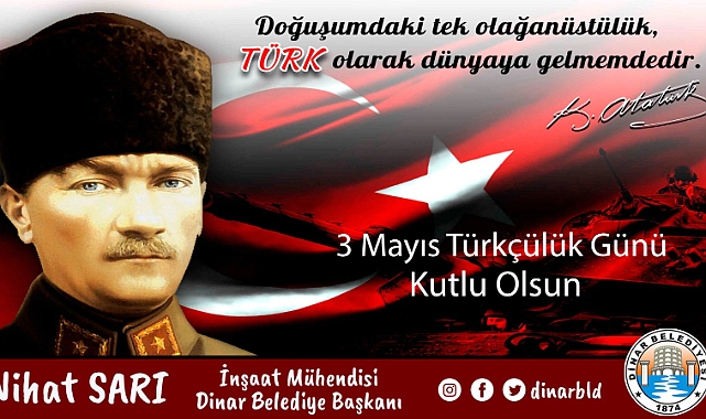 Dinar Belediye Başkanımız Nihat Sarı, 3 Mayıs Türkçülük Günü dolayısıyla bir mesaj yayımladı.
