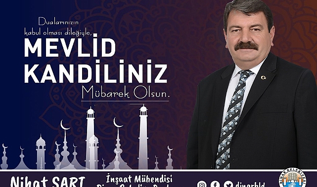 Dinar Belediye Başkanımız Nihat Sarı yayımladığı mesajında; “Bir kez daha Mevlid Kandili’ni idrak etmenin mutluluğunu ve sevincini yaşıyoruz. Doğumuyla dünyayı şereflendiren, insanlığa anlam katan, şefkât, merhamet ve sevgi peygamberi Hz. Muhammed'e (S.A.V) selâtüselam olsun.